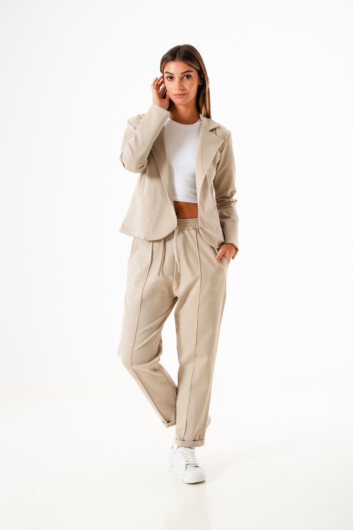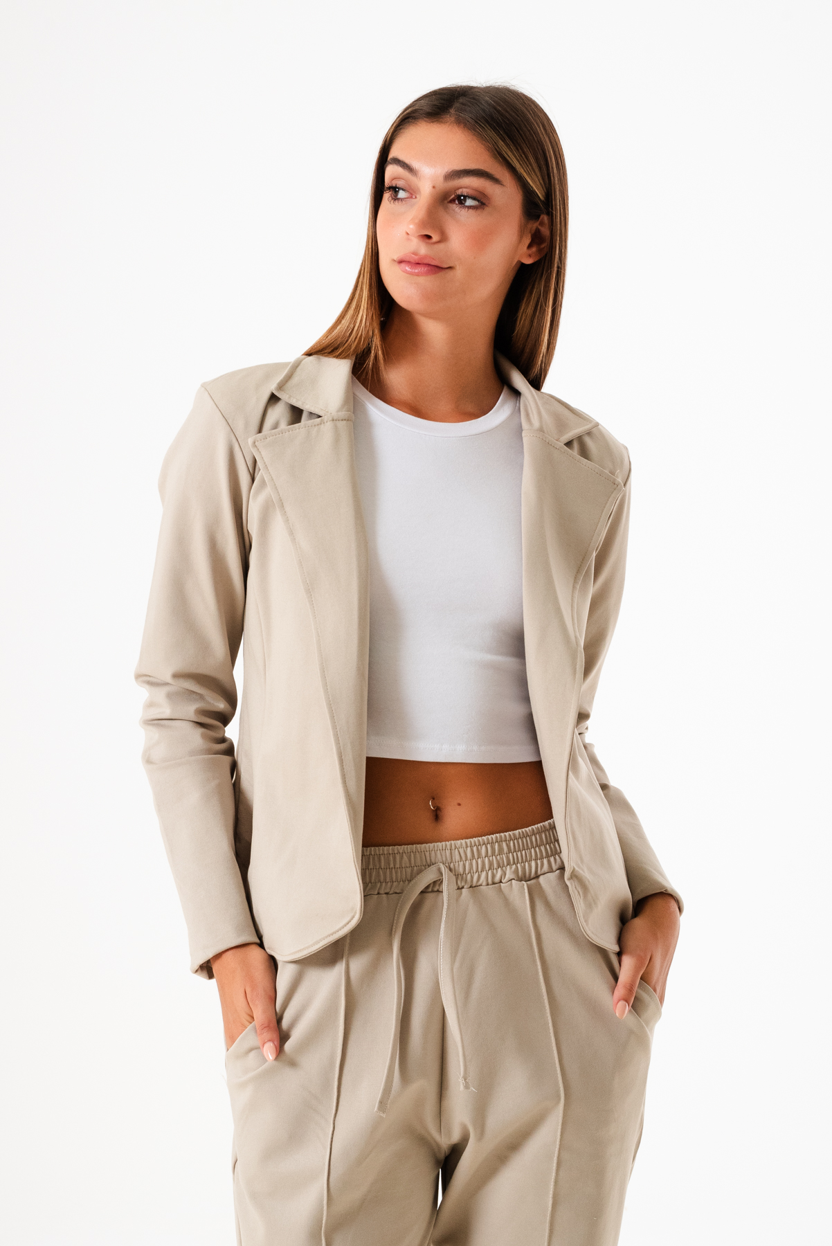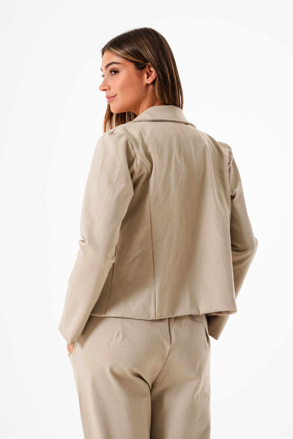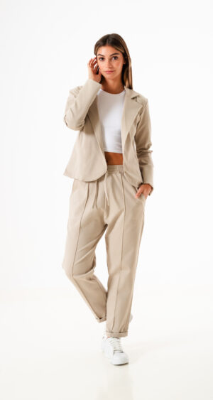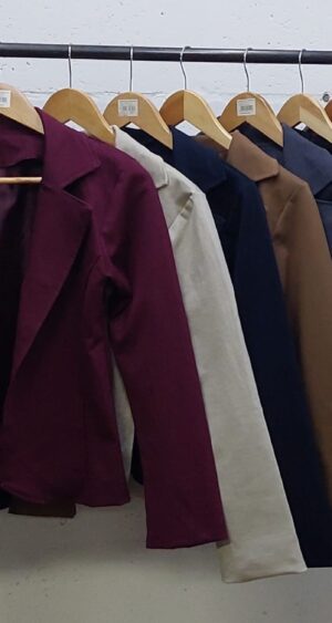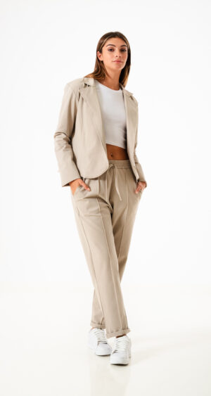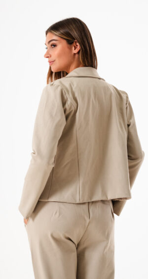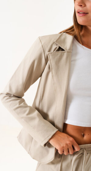 Saco confeccionado en tela de punto roma con detalle de cuello solapa