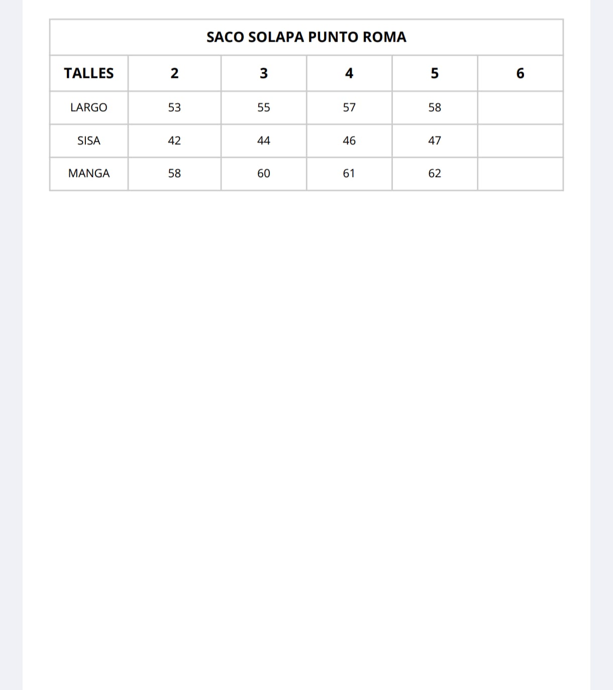 | Talles | 2, 3, 4, 5, 6 |