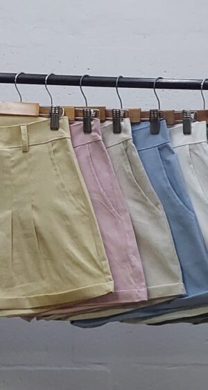 Short confeccionado en tela de lino con detalle de doble pinzas delanteras, bolsillos, pasacinto, cierre y boton.