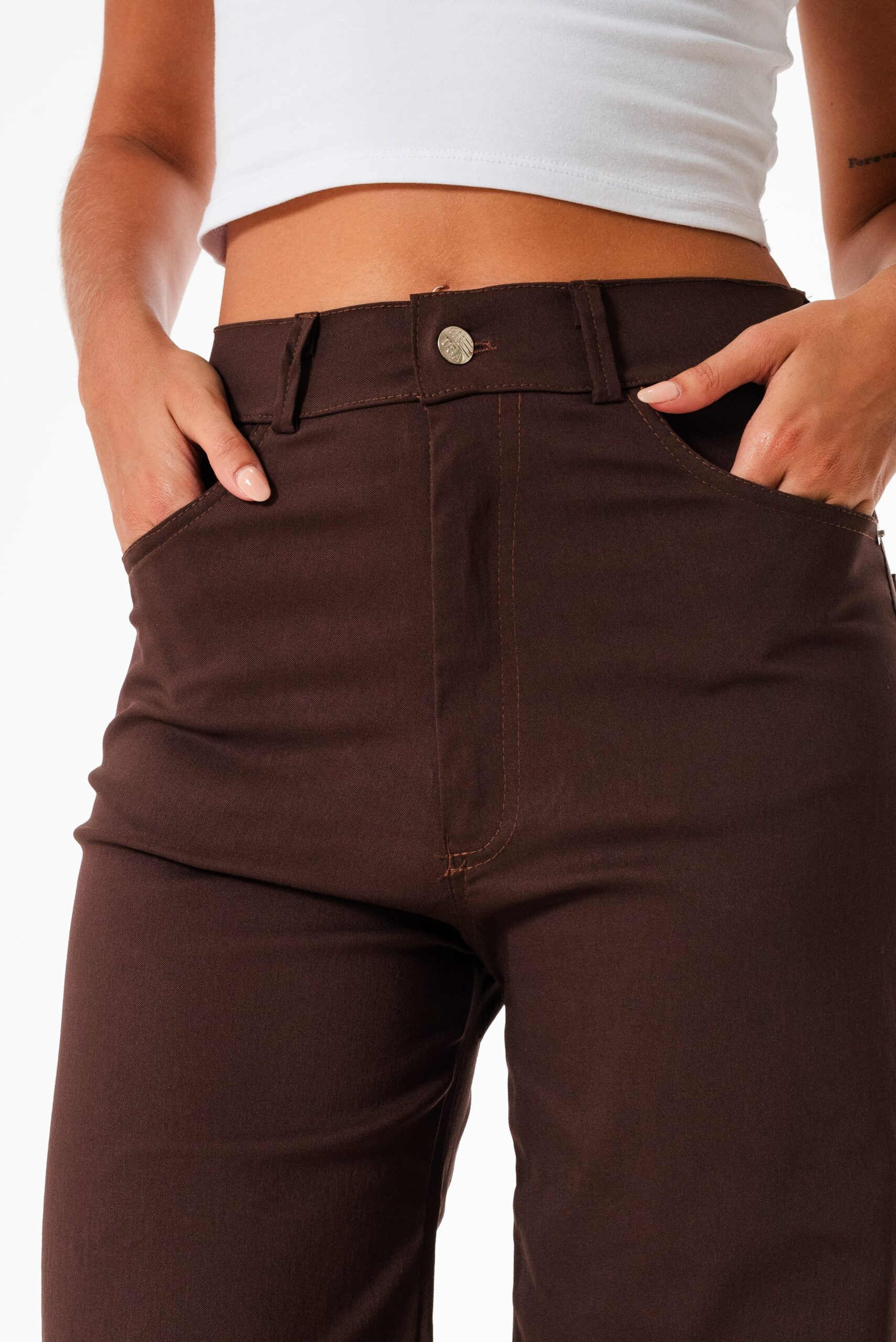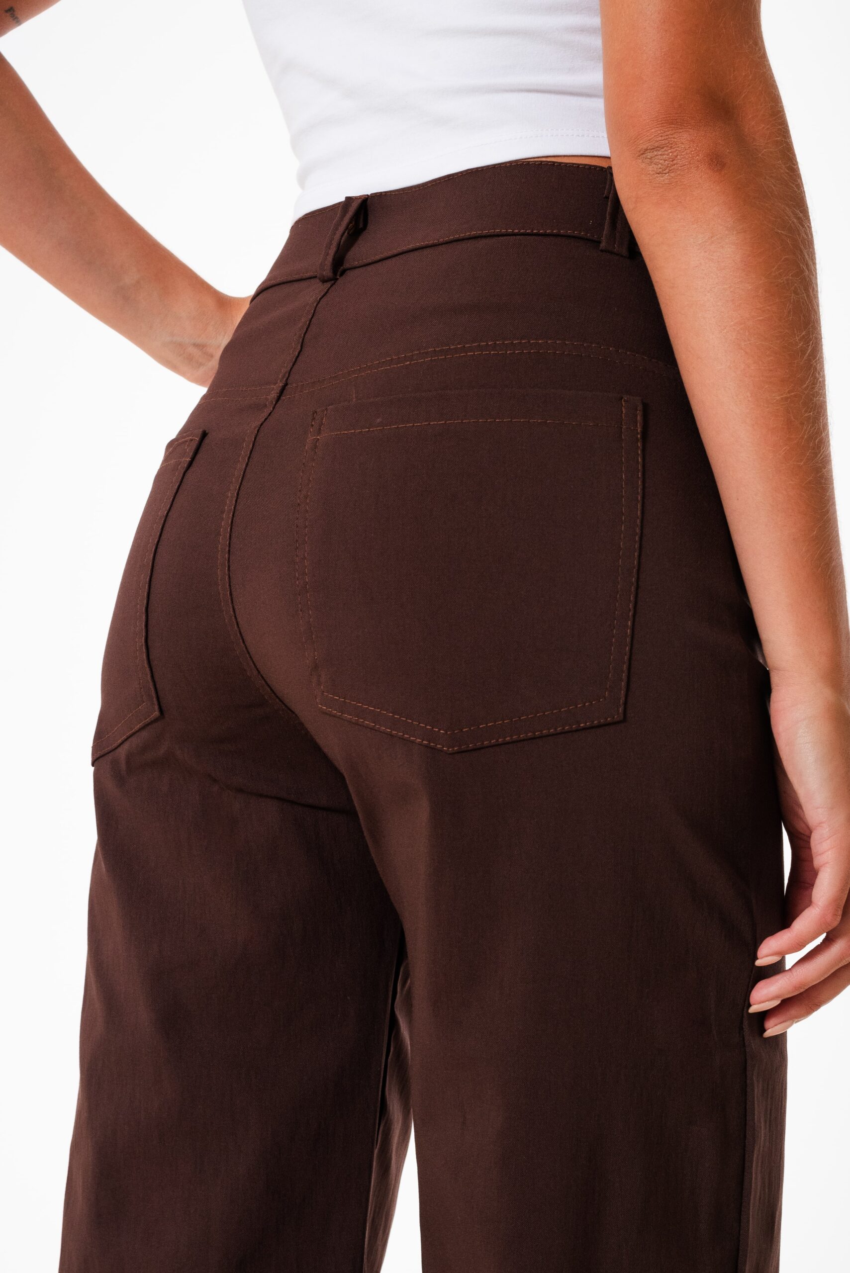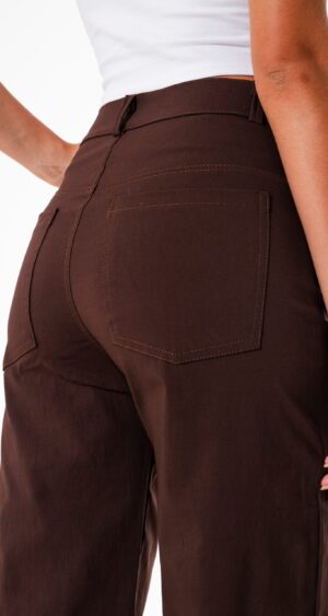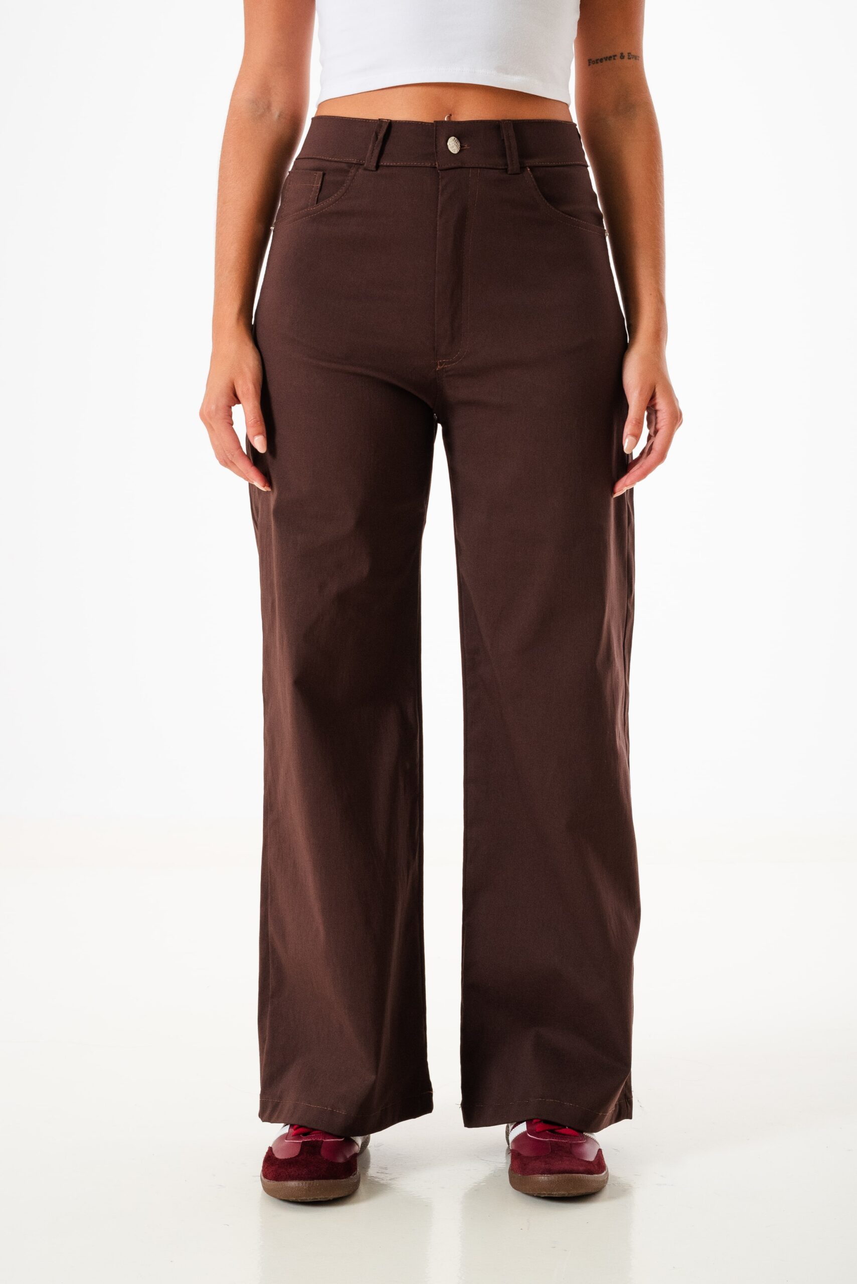 Pantalon estilo wid leg erika confeccionado en tela de bengalina con detalle de pasacinto, bolsillos, cierre y boton.