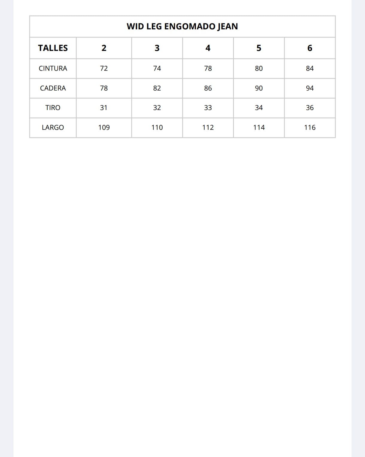 | Talles | 2, 3, 4, 5, 6 |